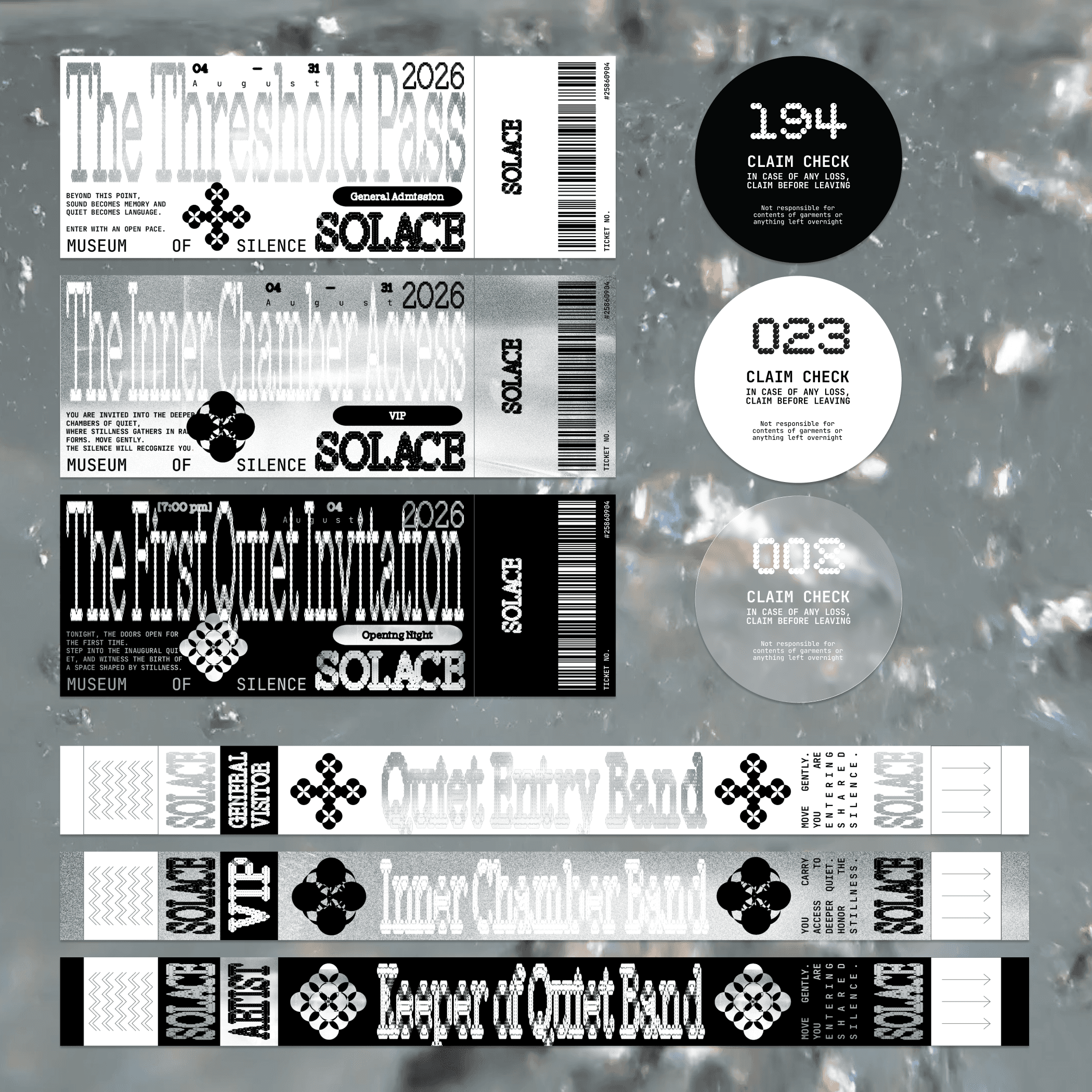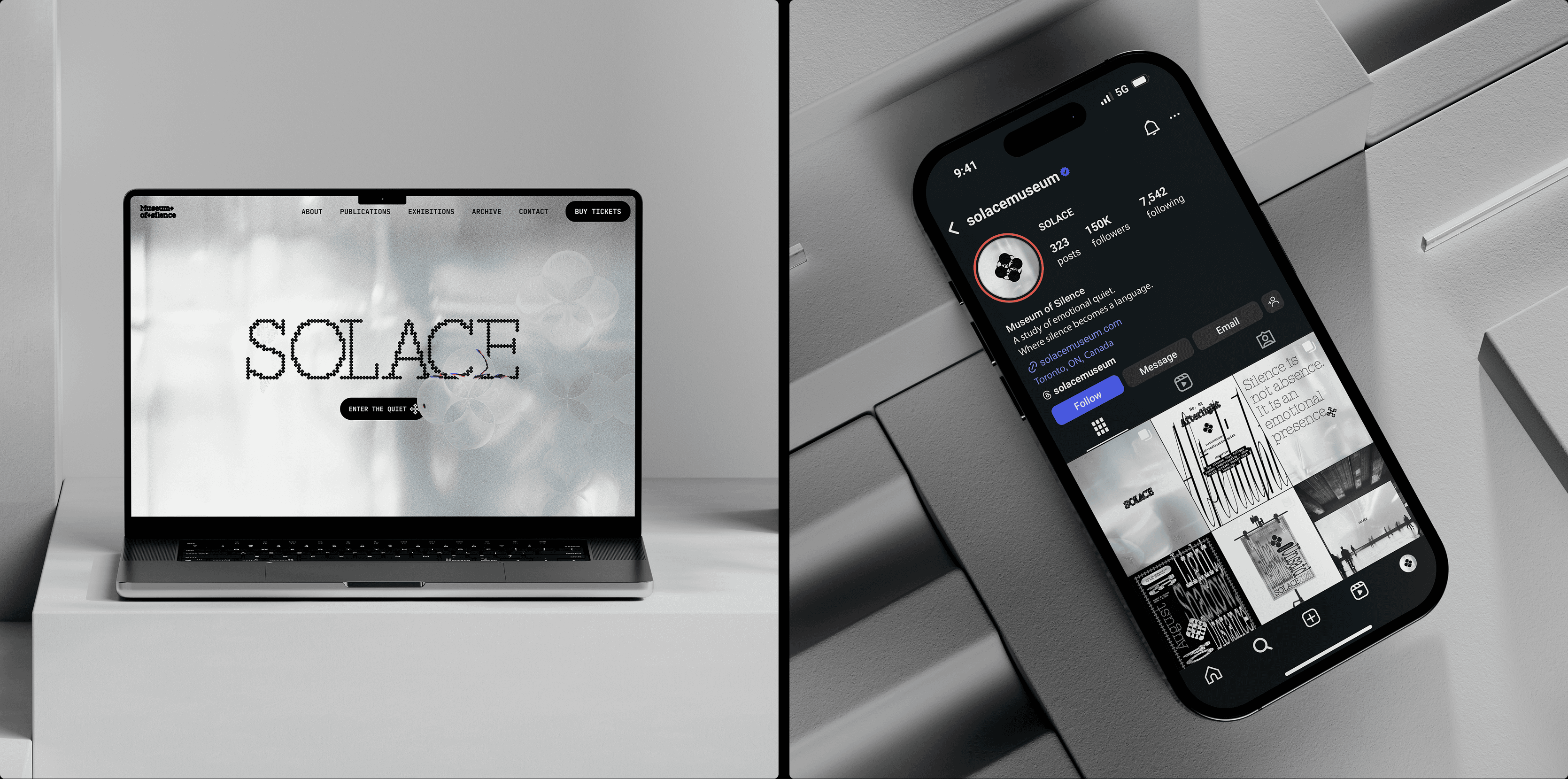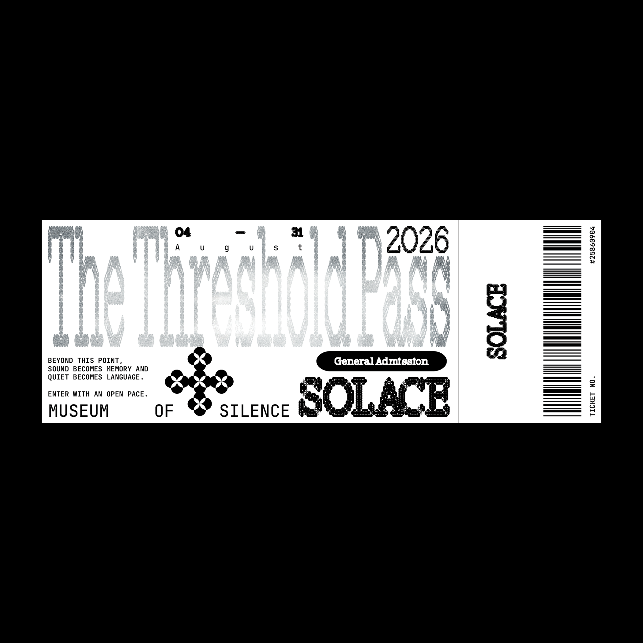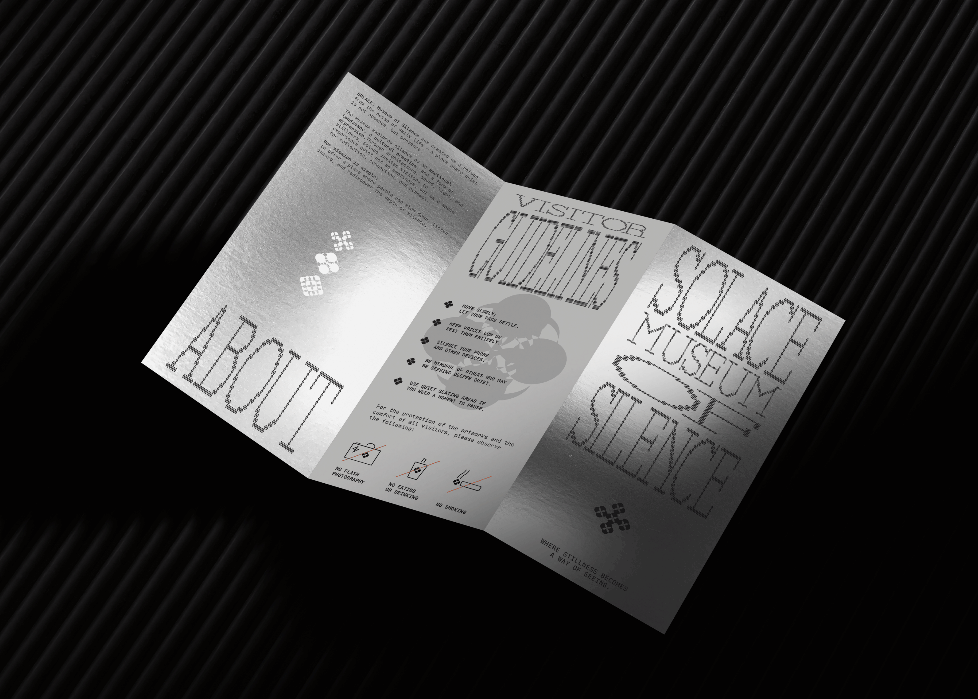 SOLACE is a conceptual museum exploring silence as an emotional, spatial, and perceptual experience. The project establishes a restrained visual identity, a three‑part publication series, and a cohesive system that connects print, digital, and spatial touchpoints. Through minimal form, controlled rhythm, and atmospheric clarity, SOLACE examines how quiet can shape attention, presence, and inner stillness.
